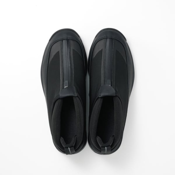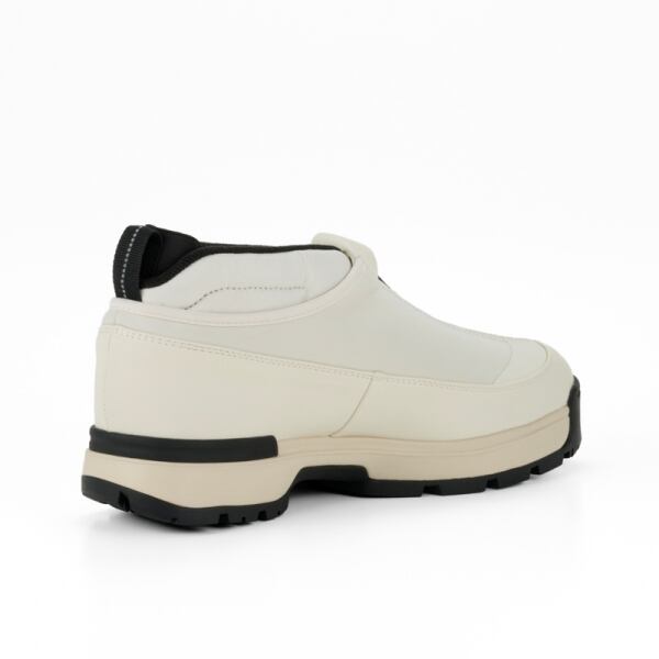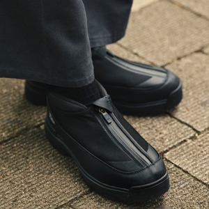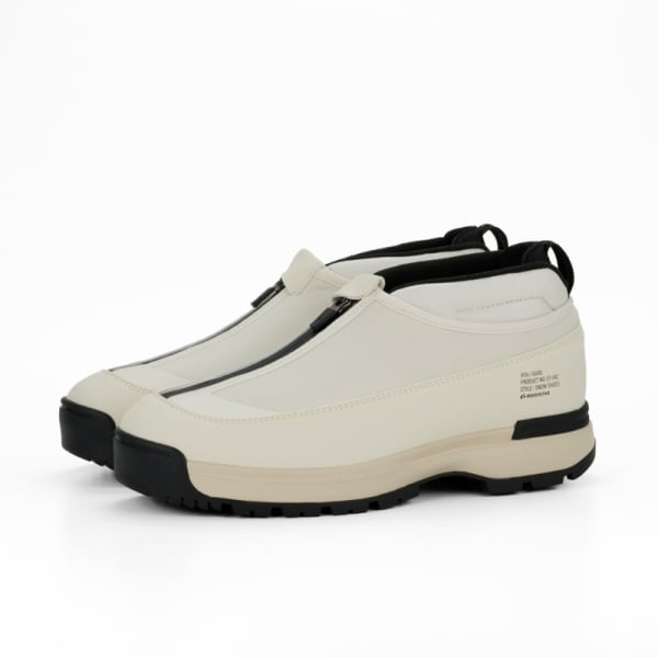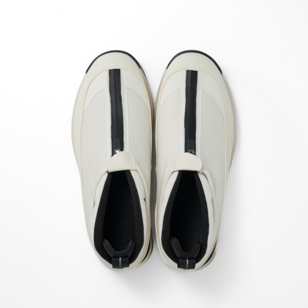 雪寒地用シューズの製造ノウハウをデイリーユースに。アウトソールには、氷上でも滑らないシロクマの足裏からヒントを得たガラス繊維配合ラバーを搭載し優れたグリップ力を発揮。ア ッパーは、着脱しやすいジッパーを搭載しながら、撥水加工を施したマテリアルで甲周りを覆った防水設計。氷上活動で必要な要素をシックな佇まいに整えたブーティタイプ。