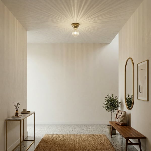 ■説 明 シンプルな真鍮製のシーリングカップにまるでガラスシェードの様な 波模様が付いたLED電球がセットになったシーリングライト。 トイレや廊下、玄関、階段、パントリー、クローゼットや洗面など 小さい空間にお勧めな照明器具です。シンプルなつくりで取り付けも簡単! ダクトレールプラグを使えばダクトレールにもご使用可能です。 何個か並べても素敵です。