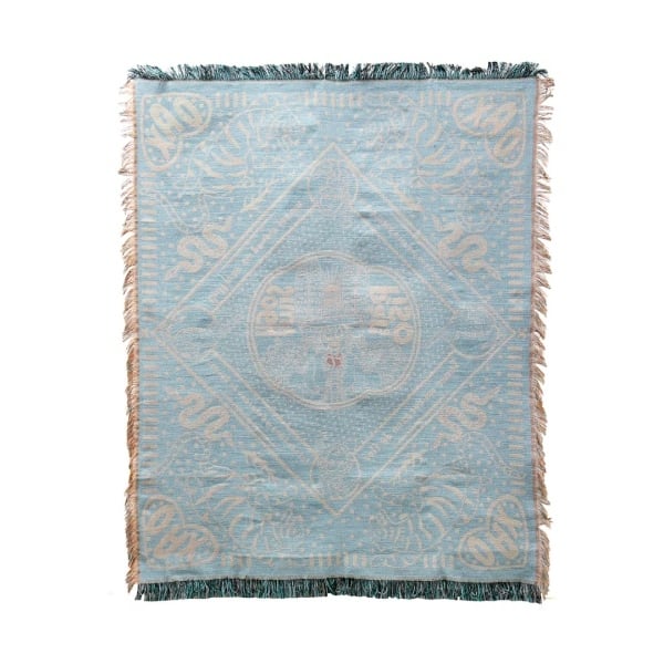 メキシコのカルチャーをモチーフにした、バンダナデザインのスローケット。 伝統的なプロレス文化「ルチャリブレ」と、オアハカ地方に伝わるウッドカービングを組み合わせ、ジャガーやコウモリ、猫や猿など個性豊かなモチーフを落とし込みました。 鮮やかな配色とリズミカルなパターンが特徴で、空間にアクセントを加えながら印象を引き締めてくれます。 ソファやベッドに掛けるだけでなく、ラグやタペストリーとしても使える汎用性の高さも魅力。通年使える素材で、インテリアとしても実用性にも優れたスローケットです。