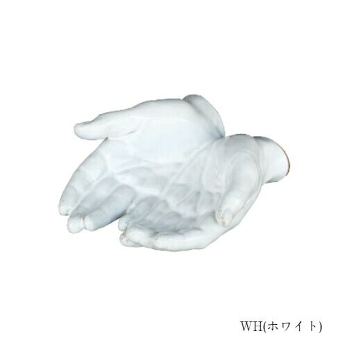 そっと両手で包み込むような仕草のハンドトレー。壁掛け、卓上どちらでもお使いいただけます。立体感を出すため、薄く釉薬をかけ下地を透かすように仕上げたホワイト。月日の流れを感じる青銅像のようなラスティーグリーン。それぞれ異なる雰囲気を持つ釉薬を使用しました。